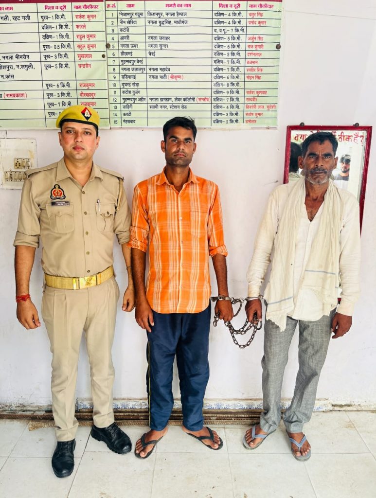 बालाजी मंदिर के पास से जेठ सोनू उर्फ अवनीश पुत्र यशवीर सिंह, ससुर यशवीर सिंह पुत्र रामभरोसी लाल निवासीगण गढिया जैंदामई थाना मटसैना को गिरफ्तार कर जेल भेज दिया।