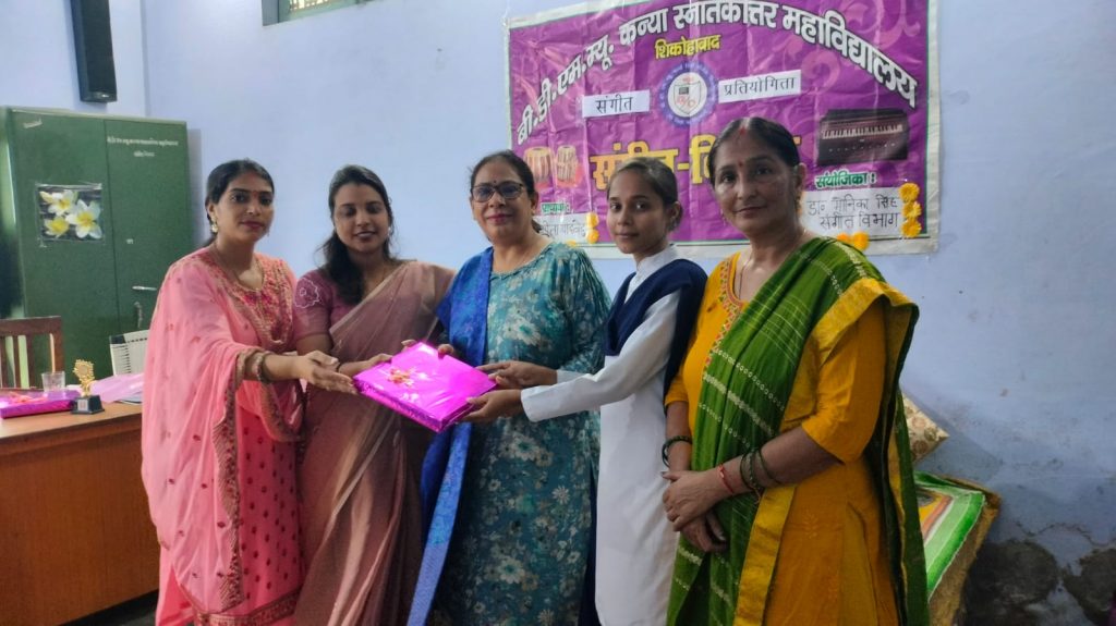 आशी अग्रवाल एवं संगीत विभाग में प्रवक्ता डाॅ चन्द्रा सिंह चौहान थी। छात्राओं द्वारा की गई कला प्रर्दशनी का अवलोकन करने के उपरान्त छात्राओं