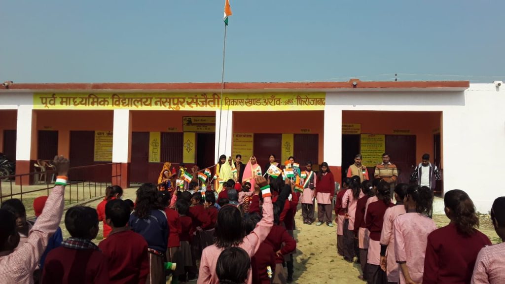 जनपद फिरोजाबाद के सिरसागंज क्षेत्र के अराव ब्लॉक के ग्राम नसूपुर संजैती के पूर्व माध्यमिक विद्यालय एवं अन्य माध्यमिक एवं पूर्व माध्यमिक में 71 वां गणतंत्र दिवस बड़े ही हर्षोल्लास के साथ मनाया गया बच्चों ने सांस्कृतिक कार्यक्रम प्रस्तुत कर कर लोगों को मंत्रमुग्ध कर दिया। साथ ही ध्वजारोहण के बाद नन्हे-मुन्ने बच्चों ने कार्यक्रम प्रस्तुत किए जिसे देख कर आए हुए लोग मंत्रमुग्ध हो गए। साथ ही बच्चों मे पुरस्कार भी वितरित किए गए। पुरस्कार पाकर बच्चों के चेहरे खिल पड़े।गणतंत्र दिवस के मौके पर छोटे-छोटे बच्चों की स्कूल में चहल-पहल देखने को मिली। इस अवसर पर विद्यालय का समस्त स्टाफ मौजूद रहा