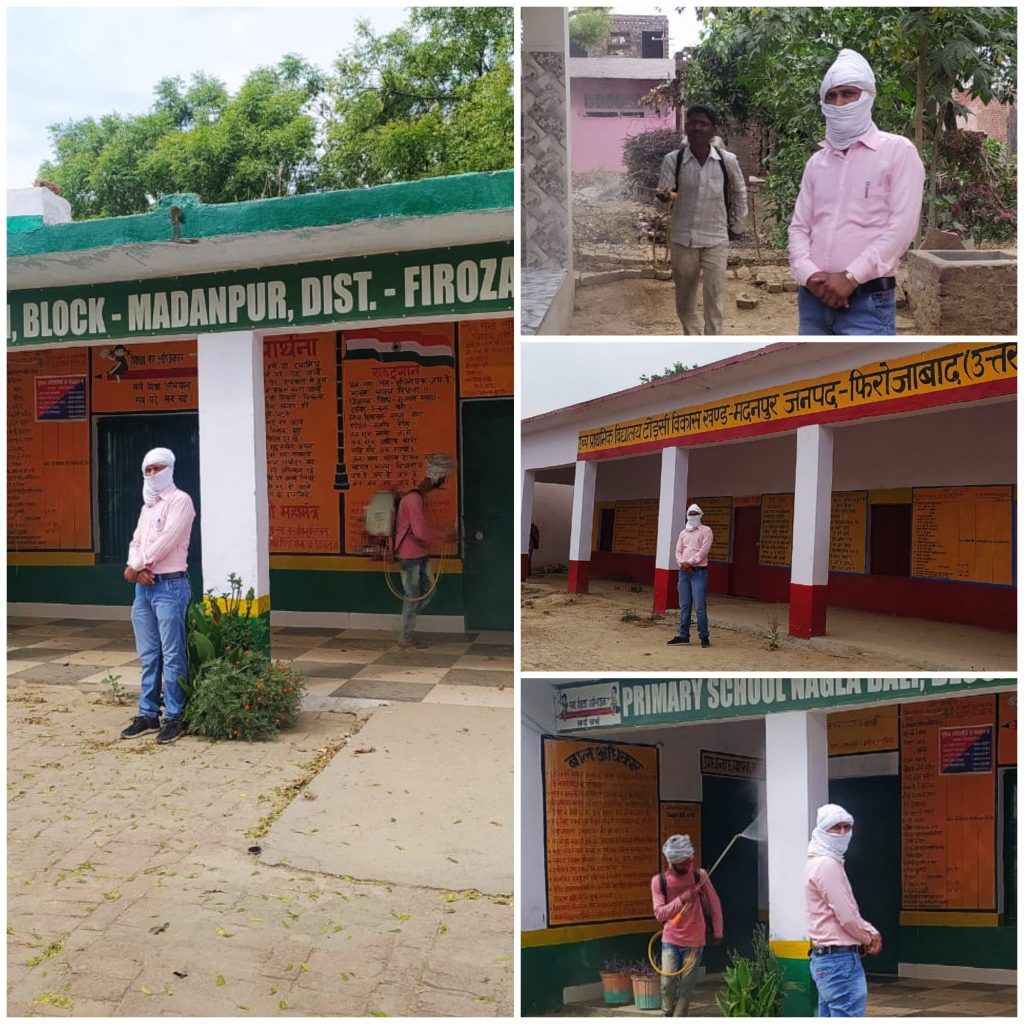 फ़िरोज़ाबाद–   कोरोना वायरस के महामारी से पूरा देश संकट में है। इस महामारी से निपटने के लिए ग्रामीण के लोग भी तमाम प्रयास कर रहे हैं।इसी क्रम में ग्राम नगला बली के ग्राम प्रधान विनीत ने ग्रामीणों को कोरोना वायरस के लक्षण बताते हुए कहा कि इस संक्रमण से जीतने के लिए हम लोगों को एक दूसरे से दूरी बनाए रखना ही हमारी जीत हैं ।साथ ही गांव में सैनिटाइजर का छिड़काव कर ग्रामीणों से अपील की स्वच्छता बनाए रखें । शासन के निर्देशानुसार बाहर से आने.जाने वालों पर पूरी तरह ध्यान रखा जा रहा हैं । अगर कोई व्यक्ति बाहर से आता हैं तो उसकी प्रशासन को सूचना देकर स्वास्थ विभाग से आइसोलेट कराया जा रहा हैं । गांव में किसी भी असहाय व्यक्ति को कोई बात की परेशानी नहीं आने दी जाएगी । वही कहा कि गांव व ग्रामीणों की पल-पल जानकारी ले रहा हूं।ग्रामीणों को सलाह देते हुए कहा कि कोई भी घर से बाहर ना निकले । अपने घर में ही रहिए । शासन प्रशासन का सहयोग करें और भी मास्क की जरूरत पड़ेगी तो उपलब्ध कराए जाएंगे